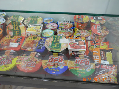 一角展示世界各地杯麵包裝,下圖為香港有售者。