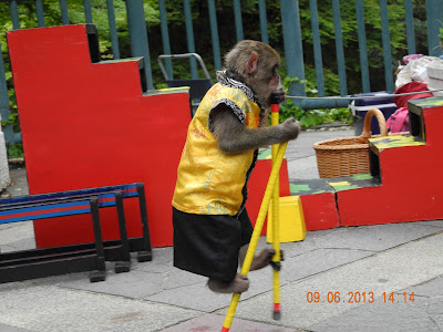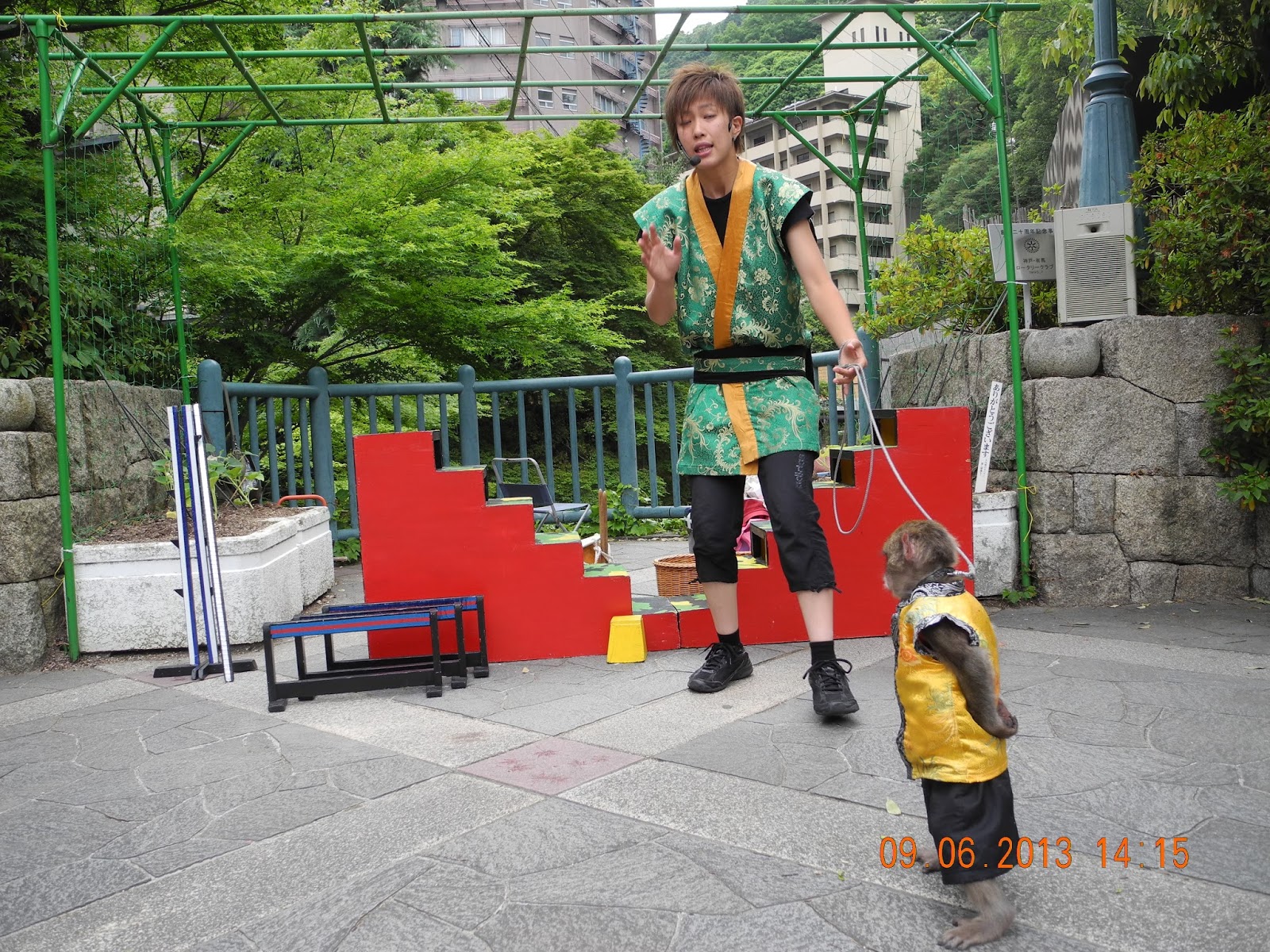 車行個多小時即到有馬。等待旅店來接,街頭表演猴子戲。純綷表演,並無推銷或討錢,應是當地旅遊局安排之節目。