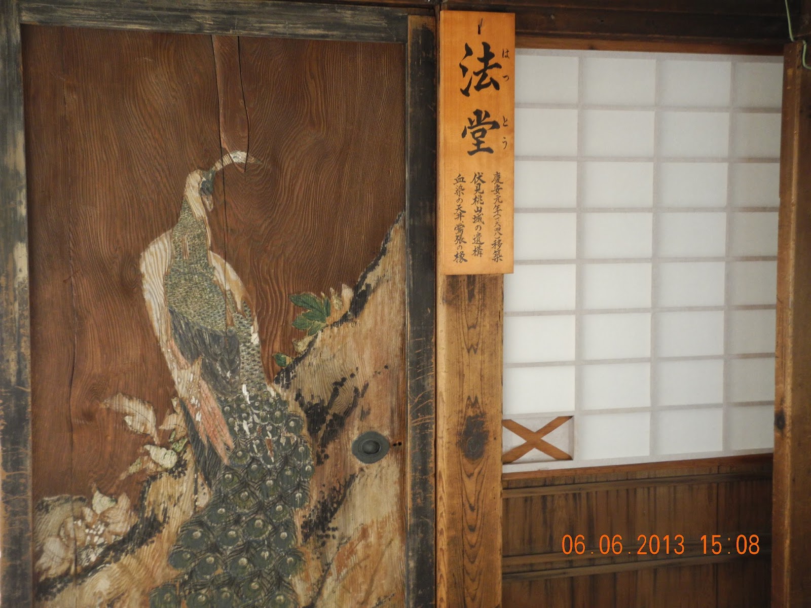 木板上繪畫孔雀。