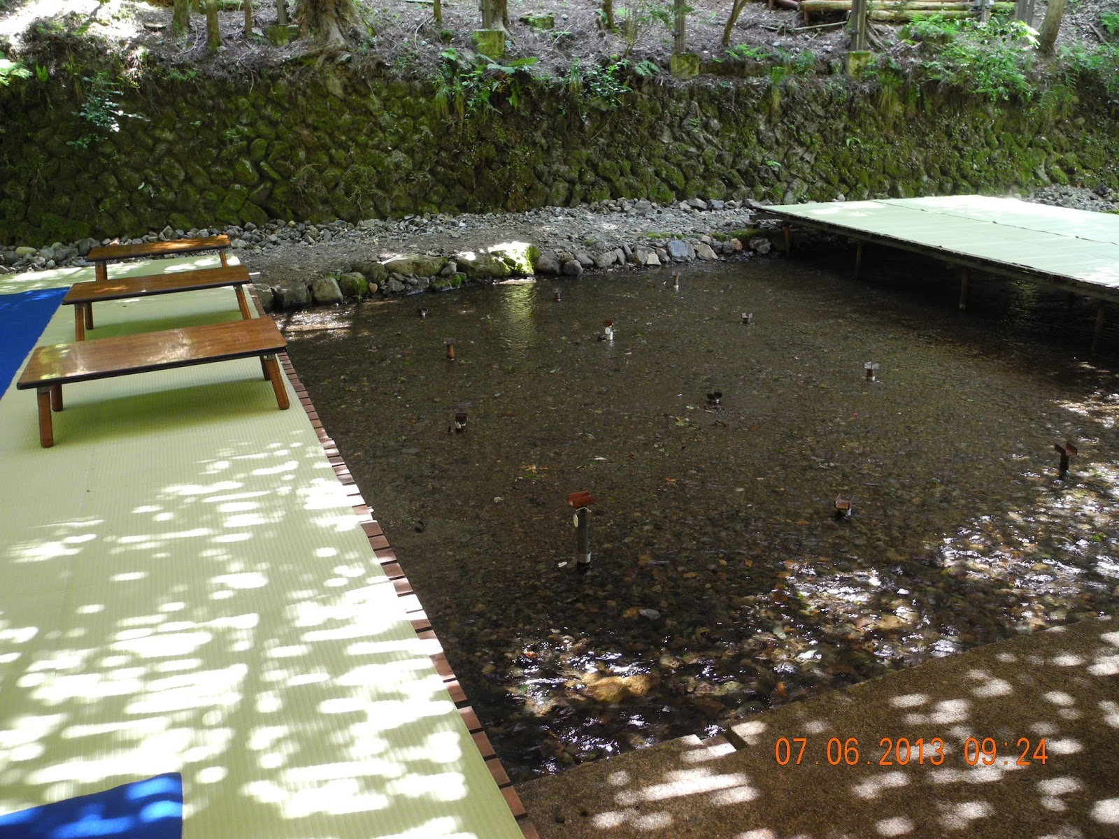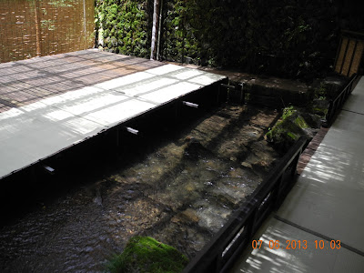 河床做得迂迴,頗有「曲水」之旨趣。遊人可坐於一旁,滄浪水濁,固可濯足;如今水清,浸腳放題。