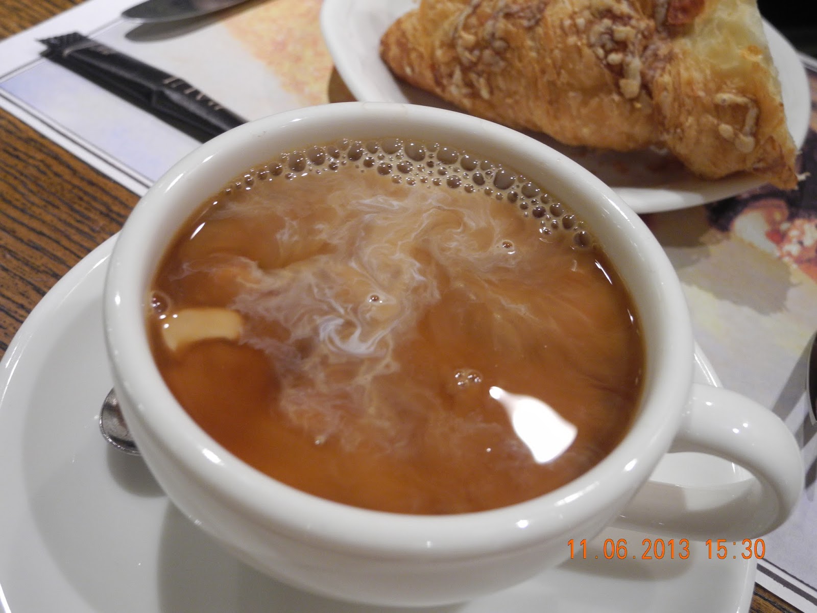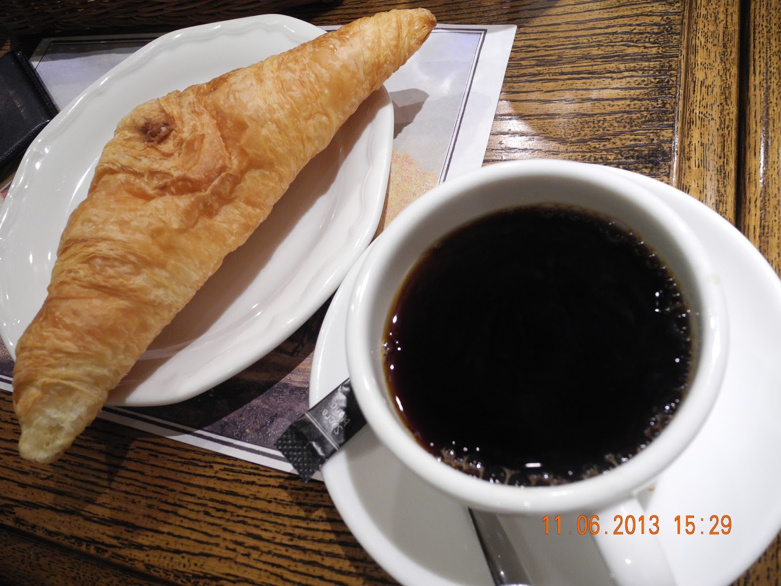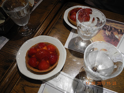 在一家餅店外賣精美蛋糕一枚,見有雅座,於是坐下喝珈琲(コーヒー)。其實堂食與外賣價不同,然而店伴不計較,將蛋糕切六份,且分配刀叉,不另收服務費。