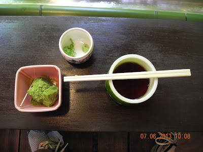每人食具一份:箸、豉油、山菽、葱、わさび(山葵)。