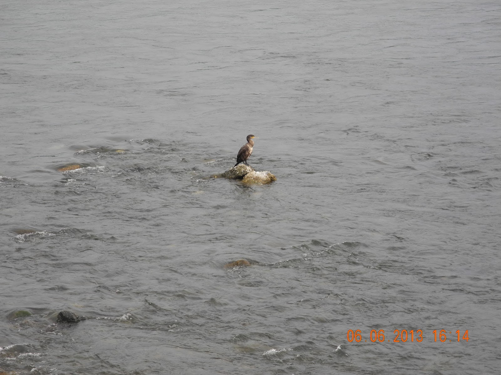 上流有漁翁用鵜捕魚,且乃表演節目。此鳥顯然係野生,毋需為漁翁工作。