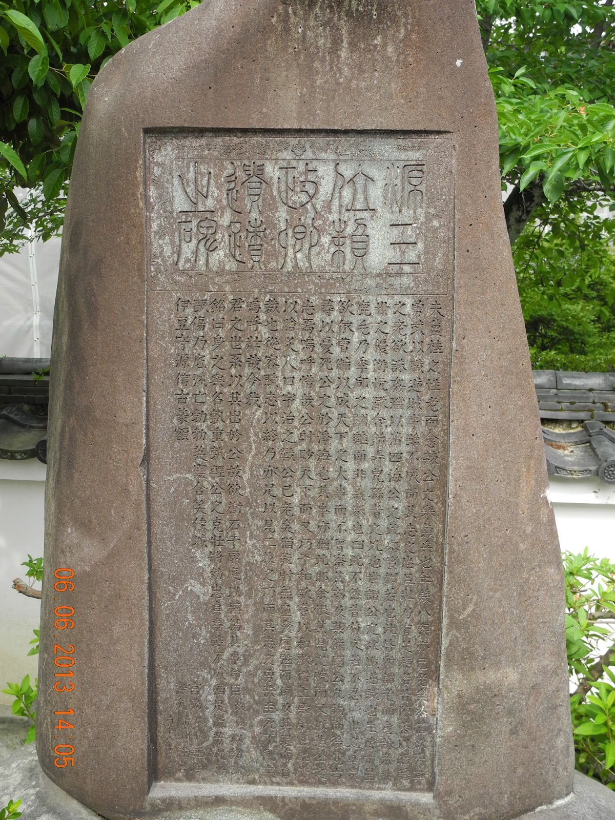 明治四十年九月,従三位勳一等,田中芳男井篆額。従七位織田完之書。東京酒井亀泉刻。」