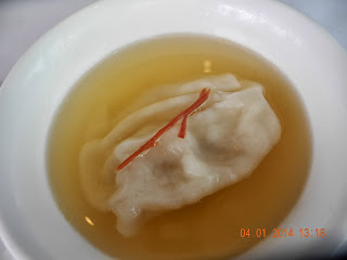 鮮蟹肉魚翅灌湯餃,內有小排魚翅,湯水夠清加入金華火腿絲吊味,好吃。