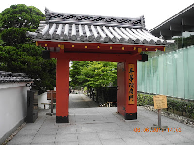 維基如是說: 平等院,位於京都府宇治市,宇治川邊,古代木構建築,據謂呈現西方極樂世界。 該院乃平安時代權傾一時藤原賴通於1052,改建其父別院而成,規模相當今日宇治面積之半。引入宇治川水,依佛教末法之境,在水池西造阿彌陀堂,水池東則建拜殿,造出『淨土庭園』,其規格更為日式庭園參考指標。 平等院主建築面對「阿字池」,初期因置奉「阿彌陀如來」與51尊「雲中供養菩薩像」而得名「阿彌陀堂」,後因建外型似振翅飛禽(《詩經‧小雅‧斯干》:「如鳥斯革,如翬斯飛。」),在正脊沿鑄有兩隻金銅鳳凰像,在江戶時期,更名為「鳳凰堂」。 「鳳凰堂」可說是集繪畫、建築、工藝與雕刻等藝術國寶於一堂之作,以其『木造天蓋、雲中菩薩供奉像、鳳凰金銅像、梵鐘與壁畫』,在1994年以「古都文化財」部分被聯合國教科文組織指定為『世界文化遺產』,現今流通的10日圓硬幣與10000日圓紙鈔背後,更可見「鳳凰堂」圖案。 |