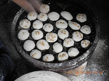 入內街一家廚房學做茶粿。粿皮係以熱水開糯粉搓成粉團,每人掰一塊掐成窩狀,盛以眉豆蝦米或花生芝麻做之餡料,再掐埋口,覆置諸預早在蒸籠之葉上。 廚房代蒸好後,會送去下一個見習課堂給我們自己品嚐。