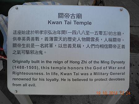 回頭參觀「關帝古廟」。 石製門聯: