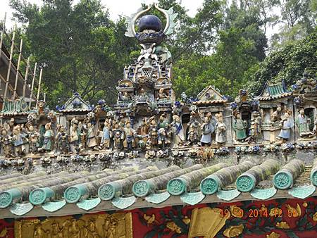 花脊中央有花籃及定火珠。下面戲文據稱係梁山一百零八好漢中,做了四十五人。