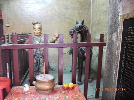 入廟右側,乃一匹深棕色馬,榮叔謂係「赤兔」。