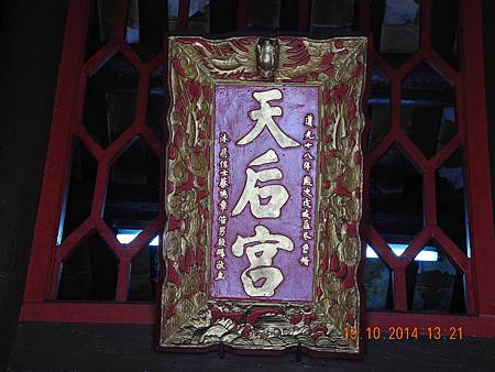 「天后宮。道光十八年。嵗次戊戌。孟冬重脩。沐恩信士 蔡瑞章偕男殿◇敬立。」