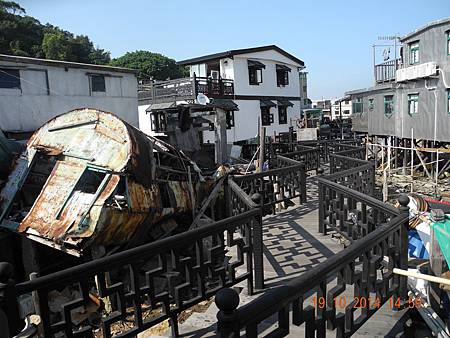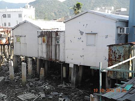 經新基大橋,瀏覽各式棚屋,此是去年大火燒去的十二間,如今重建。