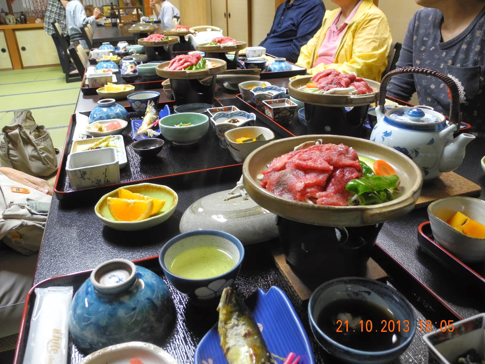 「懷石」亦可繹成「會席」,大排筵席之意。料理內容有飛騨牛肉,置於「紅坭小火爐」之上,最宜伴以「綠螘新醅酒」。可惜除了筆者之外,其他團友都不愛酒,所以以茶代之。
