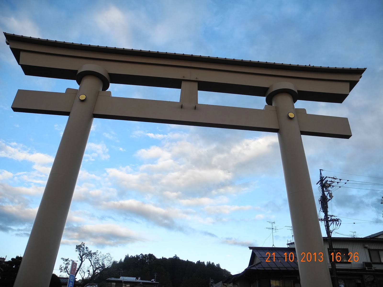 神社大門的日本皇室花紋。