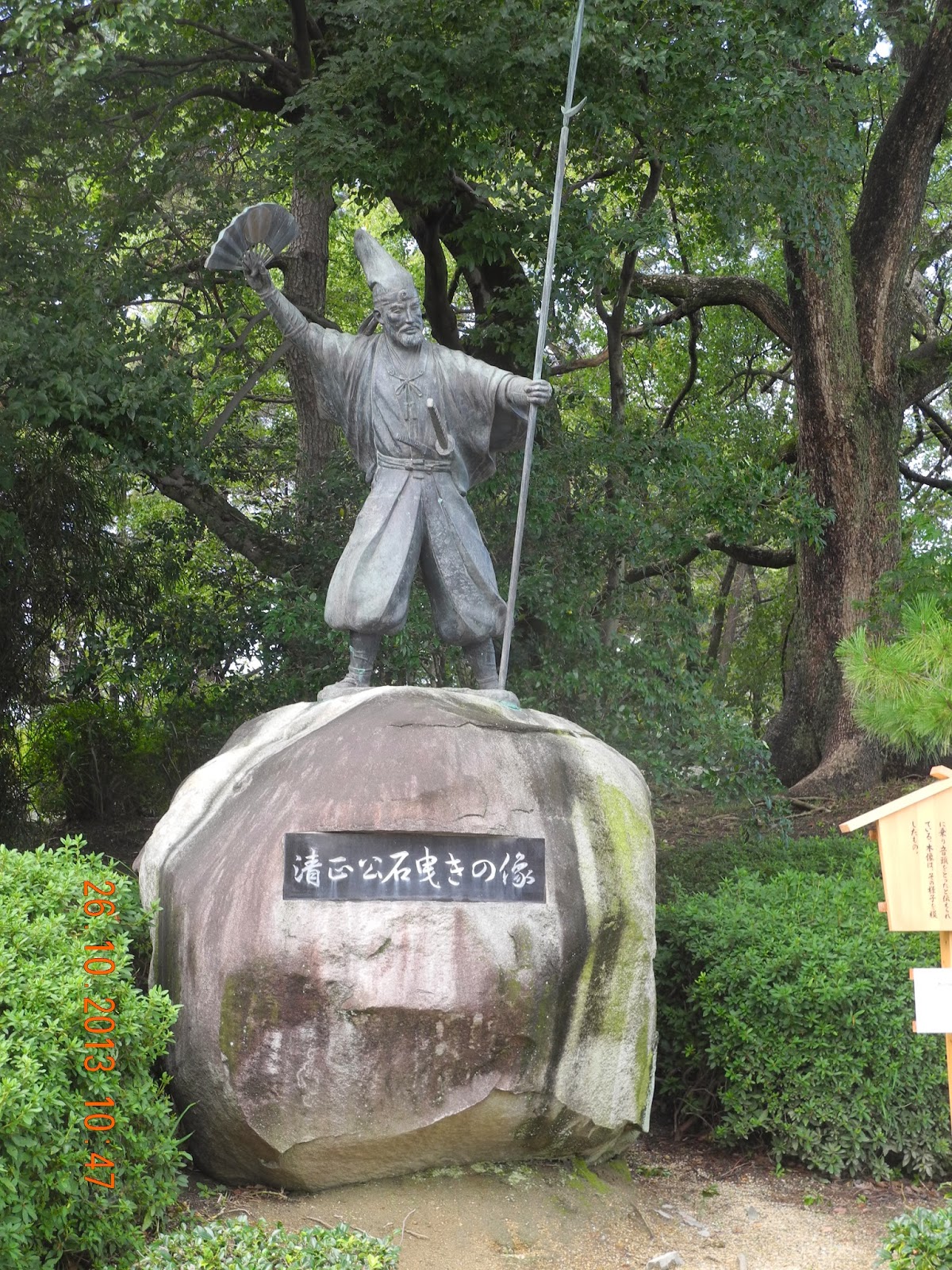 「江戶時代前期,名古屋城蔵。 背中刻銘『万治三庚子年二月吉日 御鋳物師 銅意法橋同子渡辺近江大掾正次』‧『明治四十三年三月自東京城移之』 江戸幕府御物師(おんいもじ)渡辺正俊(わたなべまさとし)‧正次親子が、万治(もんじ)3年(1660)に青銅で鋳造(ちゅうぞう)した鯱。江戸城の建物に飾られていたが、明治43年(1910)、旧江戸城の蓮池御門(はすいけごもん)が名古屋城の正門として移築されたとき、同時に運ばれ、隅櫓(すみやぐら)の鯱として用いられた。近年の修理でとりはずされた。」