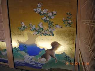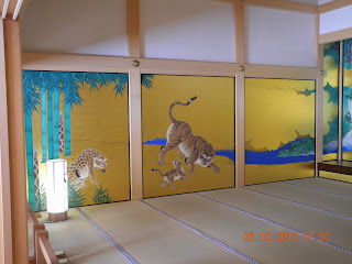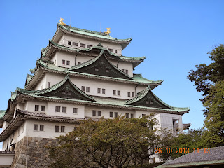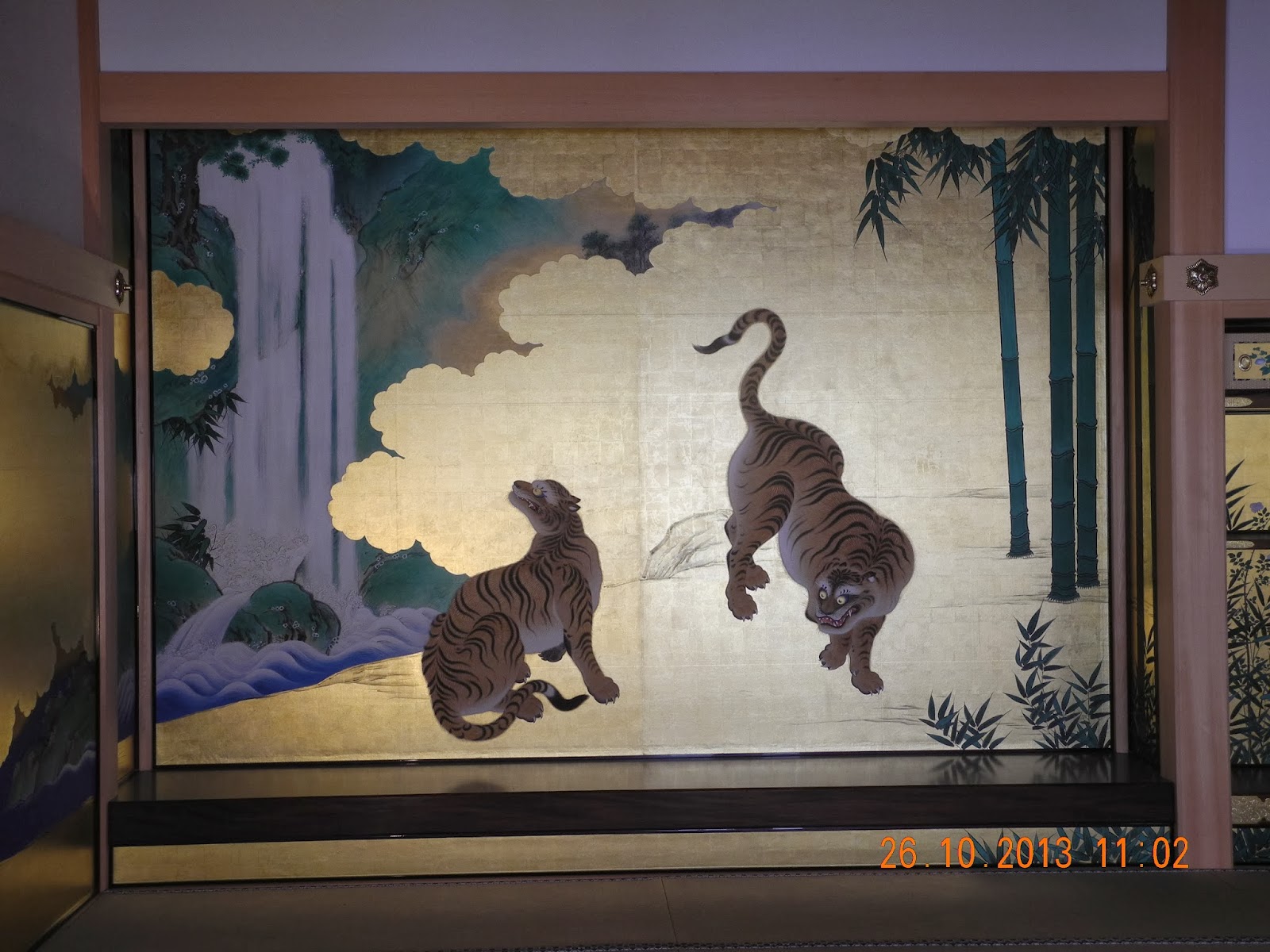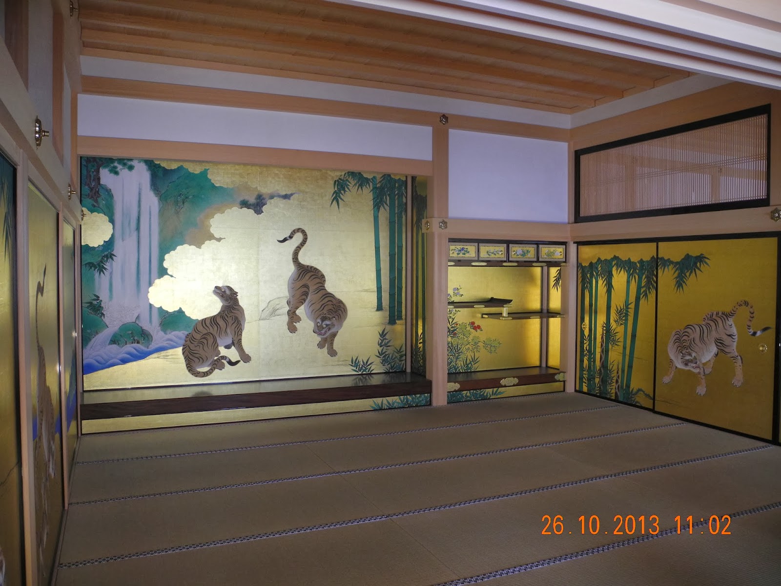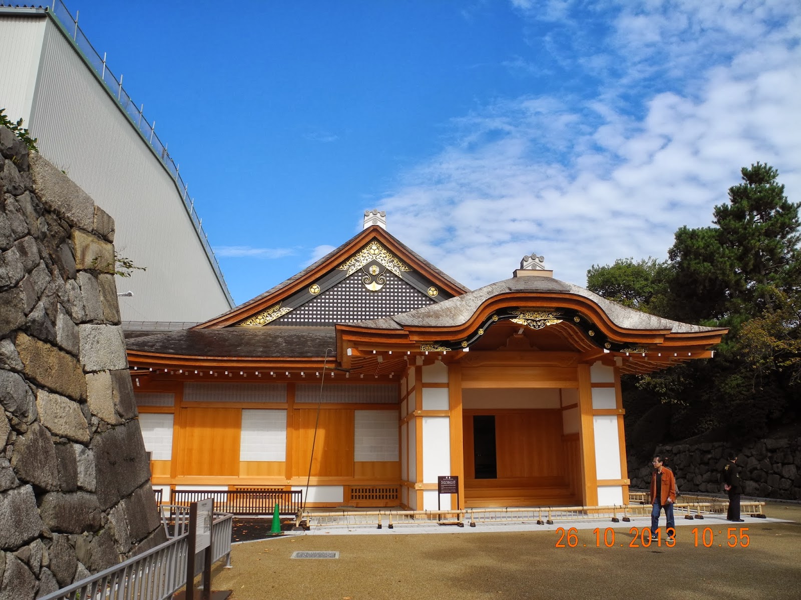 「名古屋城的本丸御殿建於1615年,當時是尾張藩主的住居。1945年遭受空襲時,本丸御殿幾乎全數遭到燒毁。後於2009年開始重建工程,2013年正式開放入口玄關及大廳表書院。」